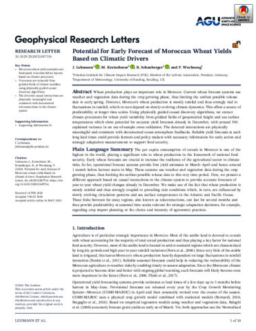 Potential for early forecast of Moroccan wheat yields based on climatic drivers.