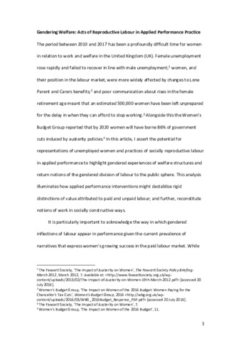 1 The Fawcett Society, ‘The Impact of Austerity on Women’, The Fawcett Society Policy Briefing: March 2012, March 7, 2012, http://www.fawcettsociety.org.uk/wp-content/uploads/2013/02/The-Impact-of-Austerity-on-Women-19th-March-2012.pdf (accessed July 20, 2016).