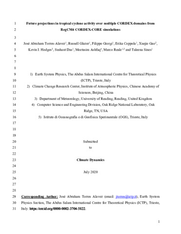 Future projections in tropical cyclone activity over multiple CORDEX domains from RegCM4 CORDEX-CORE simulations.