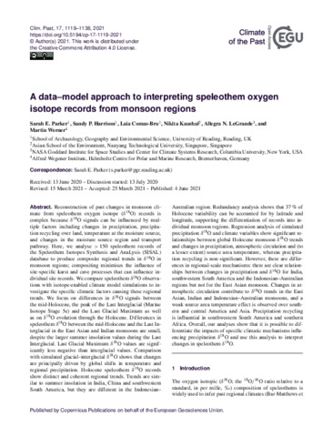 A data–model approach to interpreting speleothem oxygen isotope records from monsoon regions.