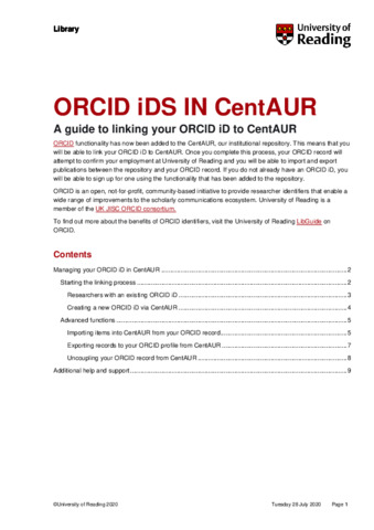 | Additional Information | ORCID Libguide: https://libguides.reading.ac.uk/orcid/home Create your ORCID iD: http://centaur.reading.ac.uk/82486/ Grow your ORCID ID: http://centaur.reading.ac.uk/82487/ |