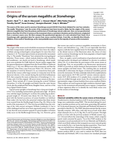 Origins of the sarsen megaliths at Stonehenge.