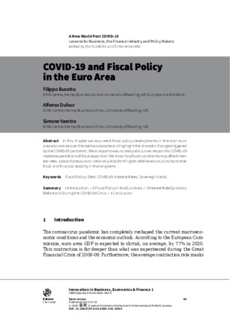 In this chapter we document fiscal policy developments in the main euro area economies over the last two decades and highlight the dramatic changes triggered by the COVID-19 pandemic. We analyse how euro area yield curves respond to COVID-19 related expectations of fiscal expansion. We show how fiscal constraints may affect interest rates. Upward pressure on national yields from higher debt levels could compromise fiscal and financial stability in the long-term.