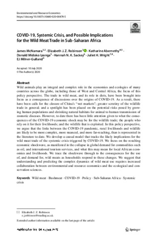 COVID-19, systemic crisis, and possible implications for the wild meat trade in sub-Saharan Africa.