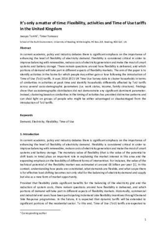 It’s only a matter of time: flexibility, activities and time of use tariffs in the United Kingdom.