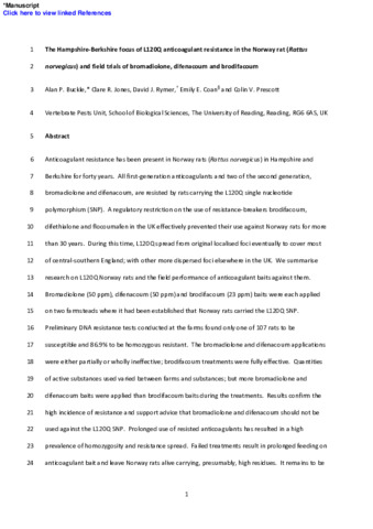 The Hampshire-Berkshire focus of L120Q anticoagulant resistance in the Norway rat (Rattus norvegicus) and field trials of bromadiolone, difenacoum and brodifacoum