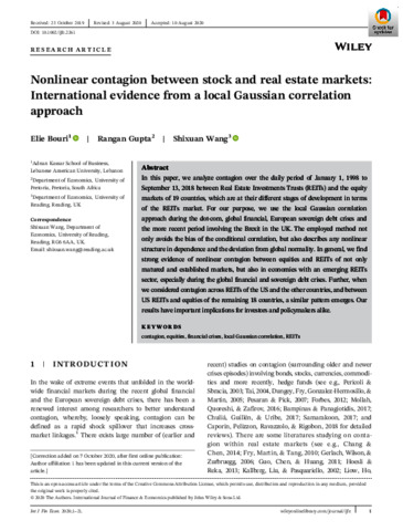 Nonlinear contagion between stock and real estate markets: international evidence from a local Gaussian correlation approach.