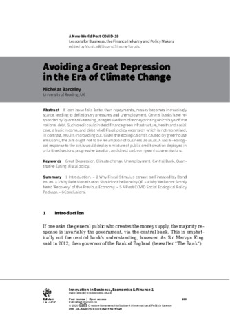 Bardsley, N. (2020) Avoiding a great depression in the era of climate change. In: Varotto, S. orcid id iconORCID: https://orcid.org/0000-0001-5328-5327 and Billio, M. (eds.) A New World Post COVID-19: Lessons for Business, the Finance Industry and Policy Makers. Edizioni Ca' Foscari. ISBN 9788869694424 doi: 10.30687/978-88-6969-442-4/020