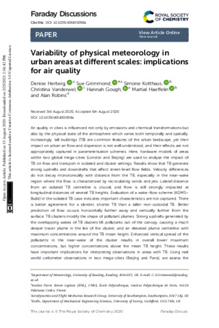 Variability of physical meteorology in urban areas at different scales: implications for air quality.