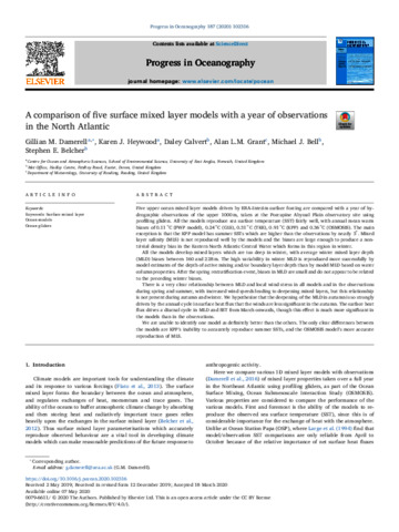 Damerell, G. M., Heywood, K. J., Calvert, D., Grant, A. L. M., Bell, M. J. and Belcher, S. E. (2020) A comparison of five surface mixed layer models with a year of observations in the North Atlantic. Progress in Oceanography, 187. 102316. ISSN 00796611 doi: 10.1016/j.pocean.2020.102316