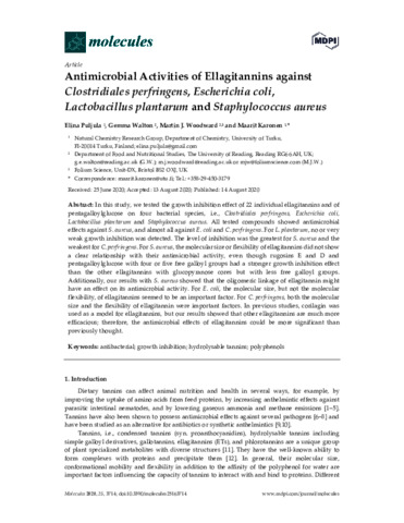 Antimicrobial activities of ellagitannins against Clostridiales perfringens, Escherichia coli, Lactobacillus plantarum and Staphylococcus aureus.