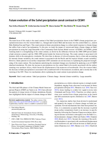Monerie, P.-A. orcid id iconORCID: https://orcid.org/0000-0002-5304-9559, Sanchez-Gomez, E., Gaetani, M., Mohino, E. and Dong, B. orcid id iconORCID: https://orcid.org/0000-0003-0809-7911 (2020) Future evolution of the Sahel precipitation zonal contrast in CESM1. Climate Dynamics, 55 (9-10). pp. 2801-2821. ISSN 0930-7575 doi: 10.1007/s00382-020-05417-w
