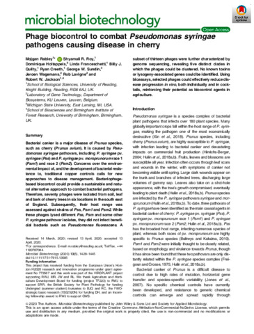 ORCID: https://orcid.org/0000-0001-8463-9087, Roy, S. R., Holtappels, D., Franceschetti, L., Quilty, B. J., Creeth, R., Sundin, G. W., Wagemans, J., Lavigne, R. and Jackson, R. W.