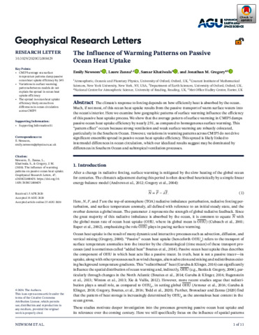 Newsom, E., Zanna, L., Khatiwala, S. and Gregory, J. M. ORCID: https://orcid.org/0000-0003-1296-8644