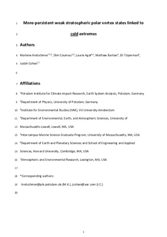 Kretschmer, M. ORCID: https://orcid.org/0000-0002-2756-9526, Coumou, D., Agel, L., Barlow, M., Tziperman, E. and Cohen, J.