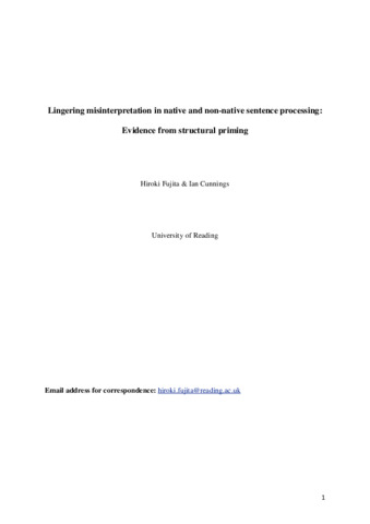 Lingering misinterpretation in native and non-native sentence processing: evidence from structural priming.