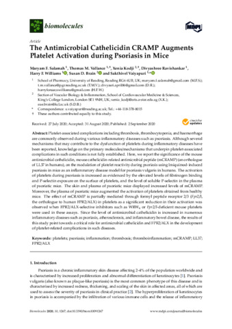 Salamah, M., Vallance, T., Kodji, X., Ravishankar, D., Williams, H., Brain, S. and Vaiyapuri, S. orcid id iconORCID: https://orcid.org/0000-0002-6006-6517 (2020) The antimicrobial cathelicidin CRAMP augments platelet activation during psoriasis in mice. Biomolecules, 10 (9). 1267. ISSN 2218-273X doi: 10.3390/biom10091267