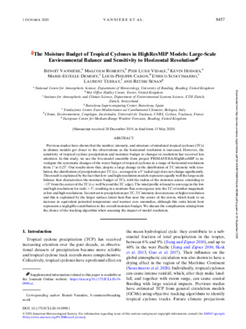The moisture budget of tropical cyclones in HighResMIP models: large-scale environmental balance and sensitivity to horizontal resolution.