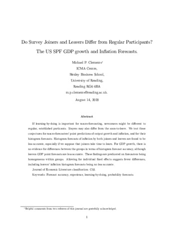 If learning-by-doing is important for macro-forecasting, newcomers might be different to regular, established particants. Stayers may also differ from the soon-to-leave. We test these conjectures for macro-forecasters' point predictions of output growth and inflation, and for their histogram forecasts. Histogram forecasts of inflation by both joiners and leavers are found to be less accurate, especially if we suppose that joiners take time to learn. For GDP growth, there is no evidence for differences between the groups in terms of histogram forecast accuracy, although leavers GDP point forecasts are less accurate. These findings are predicated on forecasters being homogeneous within groups. Allowing for individual fixed effects suggests fewer differences, including leavers' inflation histogram forecasts being no less accurate.
