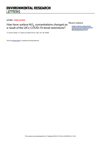 How have surface NO2 concentrations changed as a result of the UK's COVID-19 travel restrictions?
