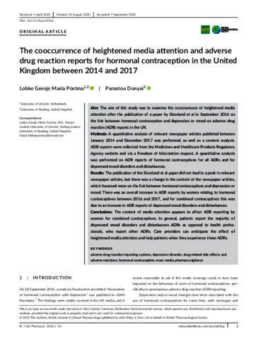 The cooccurrence of heightened media attention and adverse drug reaction reports for hormonal contraception in the United Kingdom between 2014 and 2017.