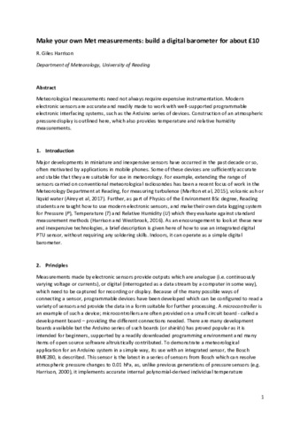 Harrison, G. orcid id iconORCID: https://orcid.org/0000-0003-0693-347X (2021) Make your own Met measurements: build a digital barometer for about £10. Weather, 76 (2). pp. 45-47. ISSN 0043-1656 doi: 10.1002/wea.3857