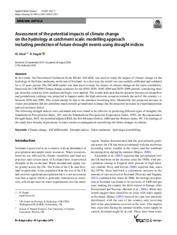 Afzal, M. and Ragab, R. orcid id iconORCID: https://orcid.org/0000-0003-2887-7616 (2020) Assessment of the potential impacts of climate change on the hydrology at catchment scale: modelling approach including prediction of future drought events using drought indices. Applied Water Science, 10 (10). ISSN 2190-5487 doi: 10.1007/s13201-020-01293-1