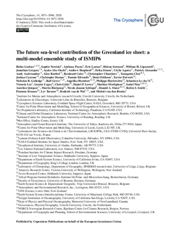 Goelzer, H., Nowicki, S., Payne, A., Larour, E., Seroussi, H., Lipscomb, W. H., Gregory, J. ORCID: https://orcid.org/0000-0003-1296-8644, Abe-Ouchi, A., Shepherd, A., Simon, E., Agosta, C., Alexander, P., Aschwanden, A., Barthel, A., Calov, R., Chambers, C., Choi, Y., Cuzzone, J., Dumas, C., Edwards, T., Felikson, D., Fettweis, X., Golledge, N. R., Greve, R., Humbert, A., Huybrechts, P., Le clec'h, S., Lee, V., Leguy, G., Little, C., Lowry, D. P., Morlighem, M., Nias, I., Quiquet, A., Rückamp, M., Schlegel, N.-J., Slater, D. A., Smith, R. S.