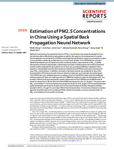 Estimation of PM2.5 concentrations in China using a spatial back propagation neural network.