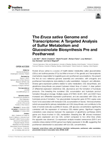 The Eruca sativa genome and transcriptome: a targeted analysis of sulfur metabolism and glucosinolate biosynthesis pre and postharvest.