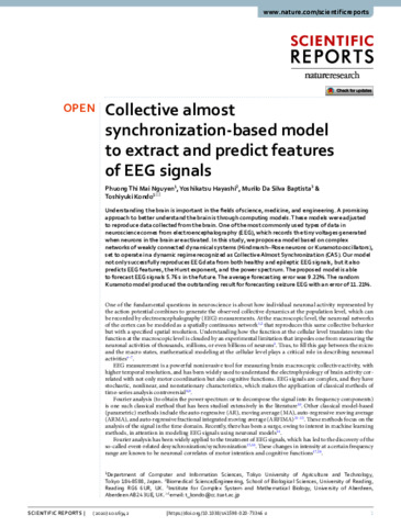 Collective almost synchronization-based model to extract and predict features of EEG signals.