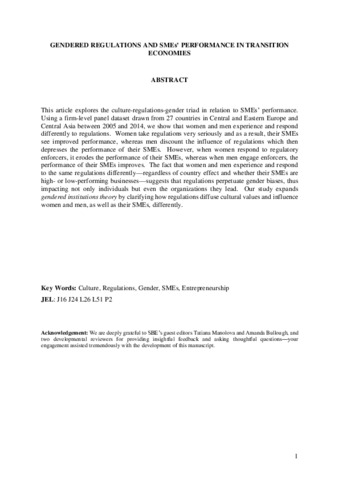 Uncontrolled Keywords Culture, Regulations, Gender, SMEs, Entrepreneurship
