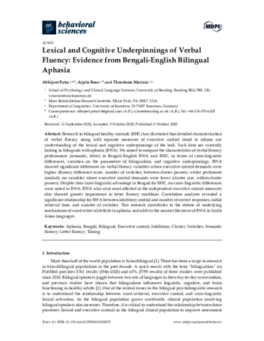 Lexical and cognitive underpinnings of verbal fluency: evidence from Bengali-English bilingual aphasia.
