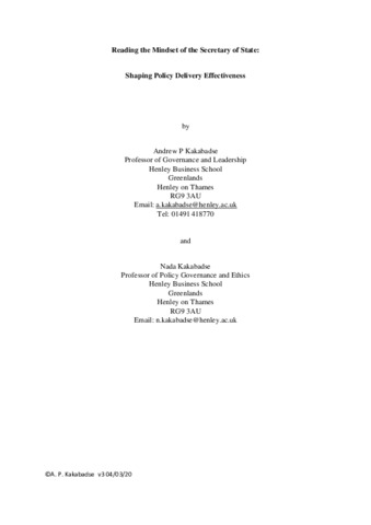 Reading the mindset of the secretary of state: shaping policy delivery effectiveness.