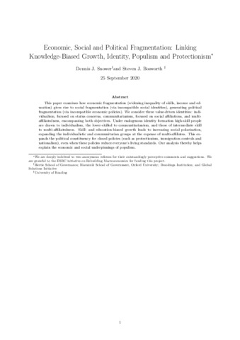 Economic, social and political fragmentation: linking knowledge-biased growth, identity, populism and protectionism.