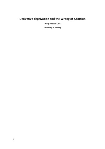 Stratton-Lake, P. (2021) Derivative deprivation and the wrong of abortion. Bioethics, 35 (3). pp. 277-283. ISSN 1467-8519 doi: 10.1111/bioe.12842