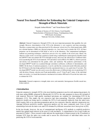 Neural tree for estimating the uniaxial compressive strength of rock materials