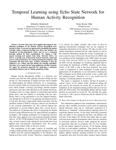 Several works have been applied to non-temporal classification techniques in the Human Activity Recognition area. Instead of that, we present an approach for modelling human activities using a temporal learning tool. Here, the activities are considered as time-dependent events, and we use a temporal learning method for their classification. We employ a well-known learning tool named Echo State Network (ESN). An ESN is a specific type of Recurrent Neural Networks, which has proven well performances for solving benchmark problems with sequential and time-series data. Another advantage is that the method is very robust and fast during the learning algorithm. Therefore, it is a good tool for being applied in real-time contexts. We apply the proposed approach for analyzing a well-know benchmark dataset, and we obtain promising results.