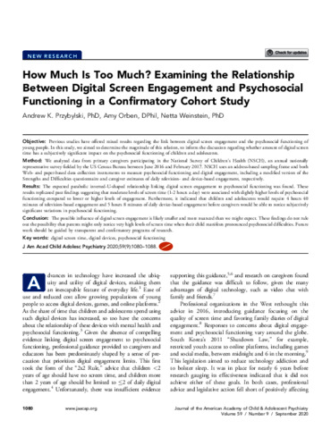 How much is too much? Examining the relationship between digital screen engagement and psychosocial functioning in a confirmatory cohort study.