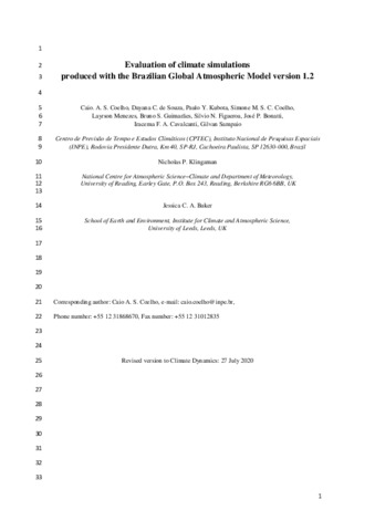 Coelho, C. A. S., de Souza, D. C., Kubota, P. Y., Coelho, S. M. S. C., Menezes, L., Guimarães, B. S., Figueroa, S. N., Bonatti, J. P., Cavalcanti, I. F. A., Sampaio, G., Klingaman, N. P. orcid id iconORCID: https://orcid.org/0000-0002-2927-9303 and Baker, J. C. A. (2021) Evaluation of climate simulations produced with the Brazilian Global Atmospheric Model version 1.2. Climate Dynamics, 56. pp. 873-898. ISSN 0930-7575 doi: 10.1007/s00382-020-05508-8