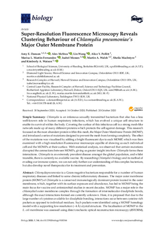 Super-resolution fluorescence microscopy reveals clustering behaviour of Chlamydia pneumoniae’s major outer membrane protein.
