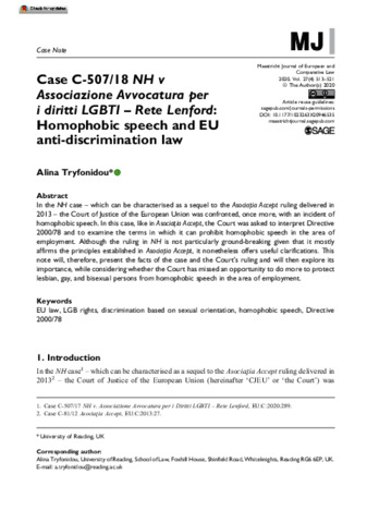 Case C-507/18 NH v Associazione Avvocatura per i diritti LGBTI – Rete Lenford: homophobic speech and EU anti-discrimination law.