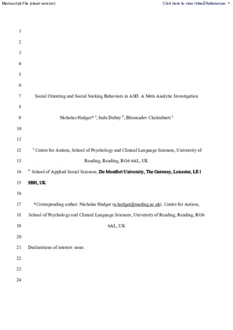 Social orienting and social seeking behaviors in ASD. A meta analytic investigation.
