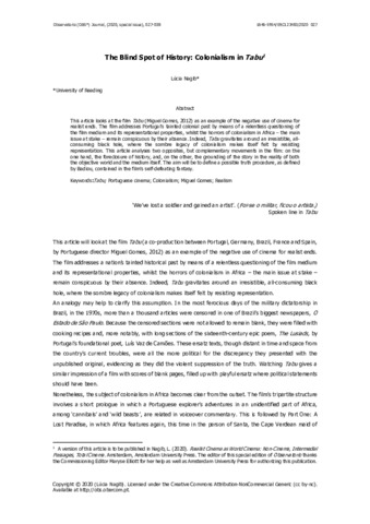 Uncontrolled Keywords | Portuguese Cinema; Colonialism; Miguel Gomes; Tabu |