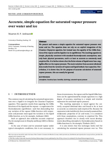 Accurate, simple equation for saturated vapour pressure over water and ice.