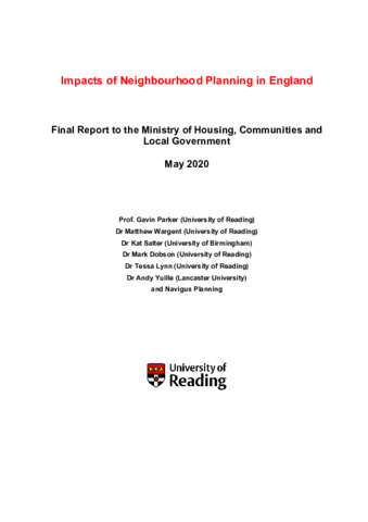 Impacts of neighbourhood planning in England.