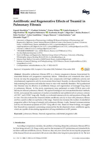 Antifibrotic and regenerative effects of Treamid in pulmonary fibrosis.