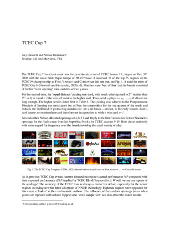 This is the report of the 'TCEC Cup 7' computational experiment, the 7th TCEC knockout event and the second major part of TCEC’s 19th season. It started on 30th October 2020 and featured the best 32 available engines of the ‘TCEC 19’ league event. The games were held at Rapid tempo, the different format calling for different optimal settings in the engines and enabling a comparison with performance at slower tempi, albeit both being at super-GM level. STOCKFISH defeated LEELA CHESS ZERO in the Final. All decisive games in the supplementary data have been played out by FRITZ17 at search depth 24 to enable and to benchmark endgame practice.