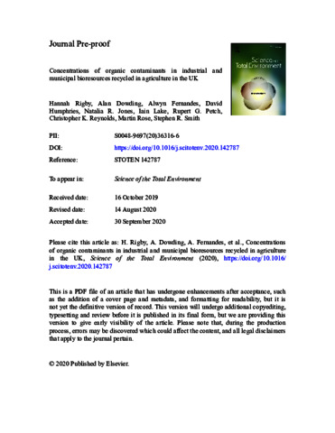 Concentrations of organic contaminants in industrial and municipal bioresources recycled in
