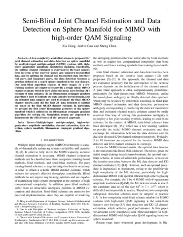 Semi-blind joint channel estimation and data detection on sphere manifold for MIMO with high-order QAM signaling.